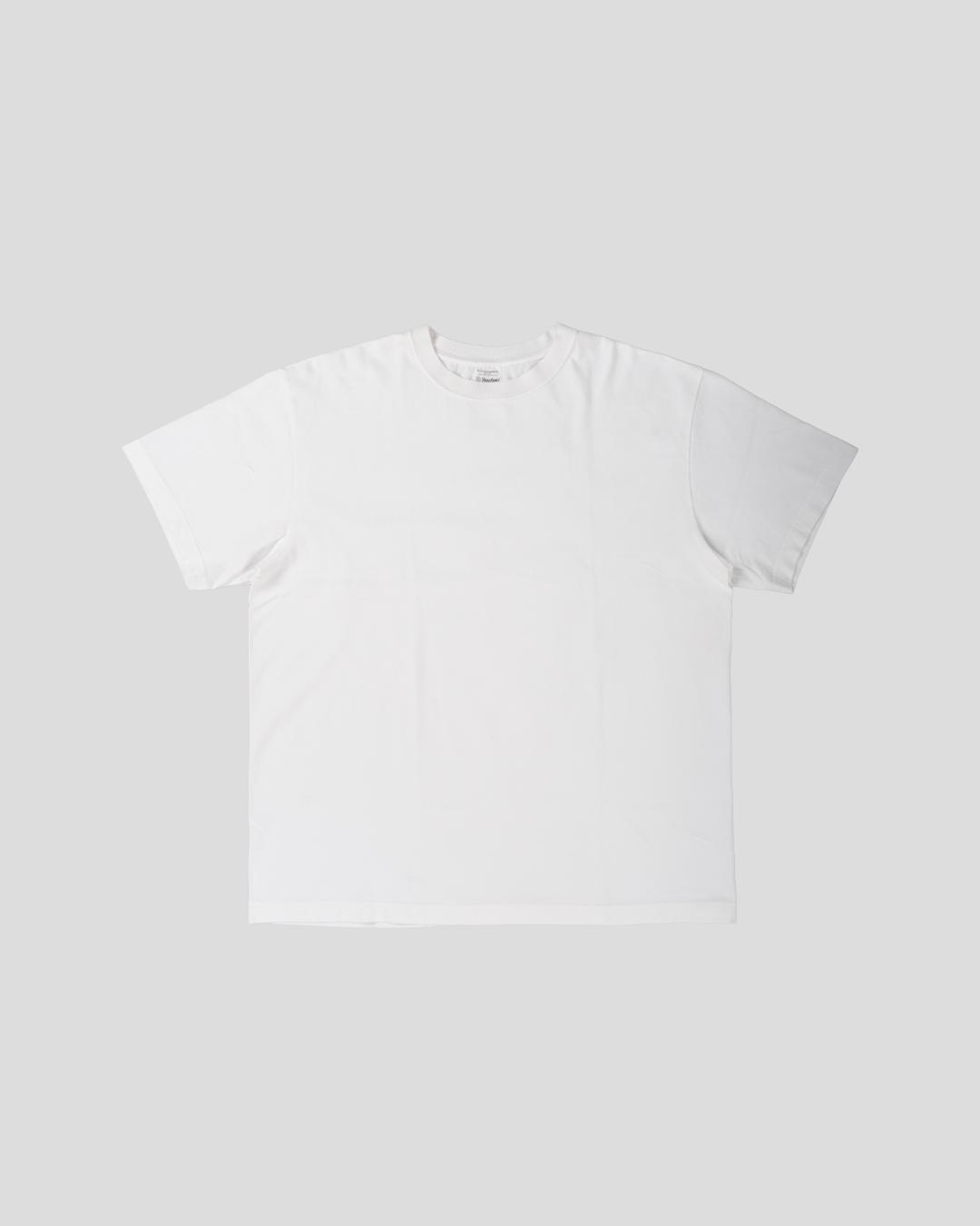 作為內衣穿的T恤有點透明,厚重的T恤太厚,不適合當內衣穿。我們的目標是創造一個恰到好處的作品並解決這些問題。這種客製化布料採用美國棉和澳洲棉混紡的粗紗製成,重量為7.5 oz。透過緊密編織布料,雖然不像所謂的重量級T恤那麼厚,但也不會透視,並且兼具T恤和運動服所需的功能 。穿得越多,會越適合你的身體,你也會越喜歡它的外觀。